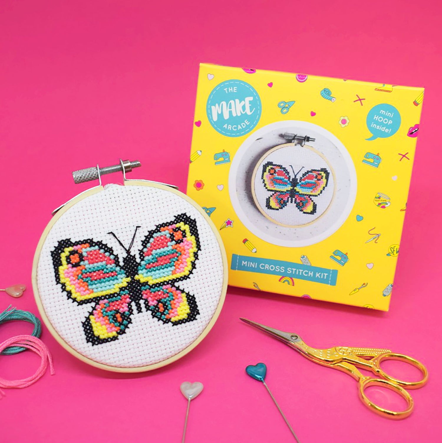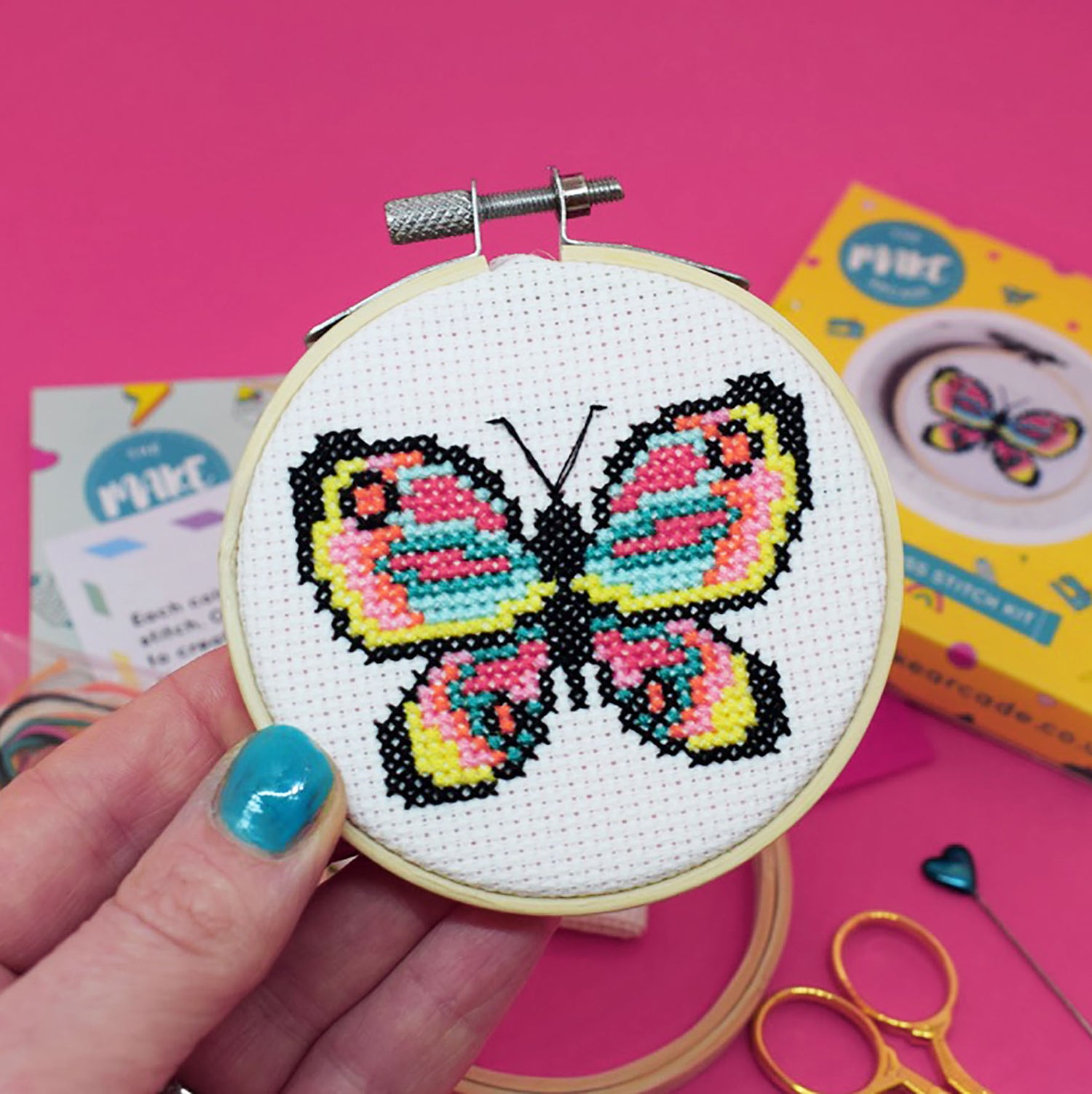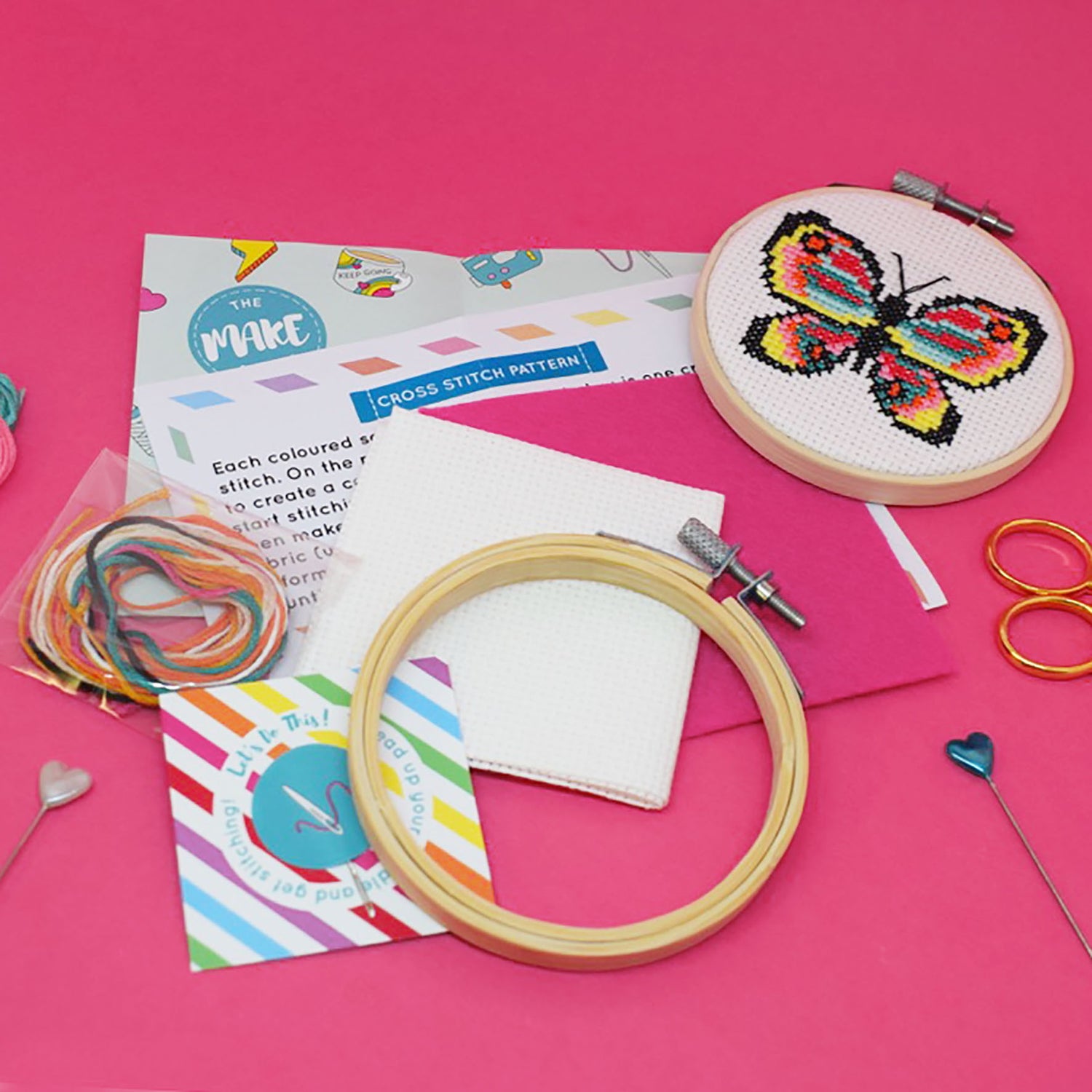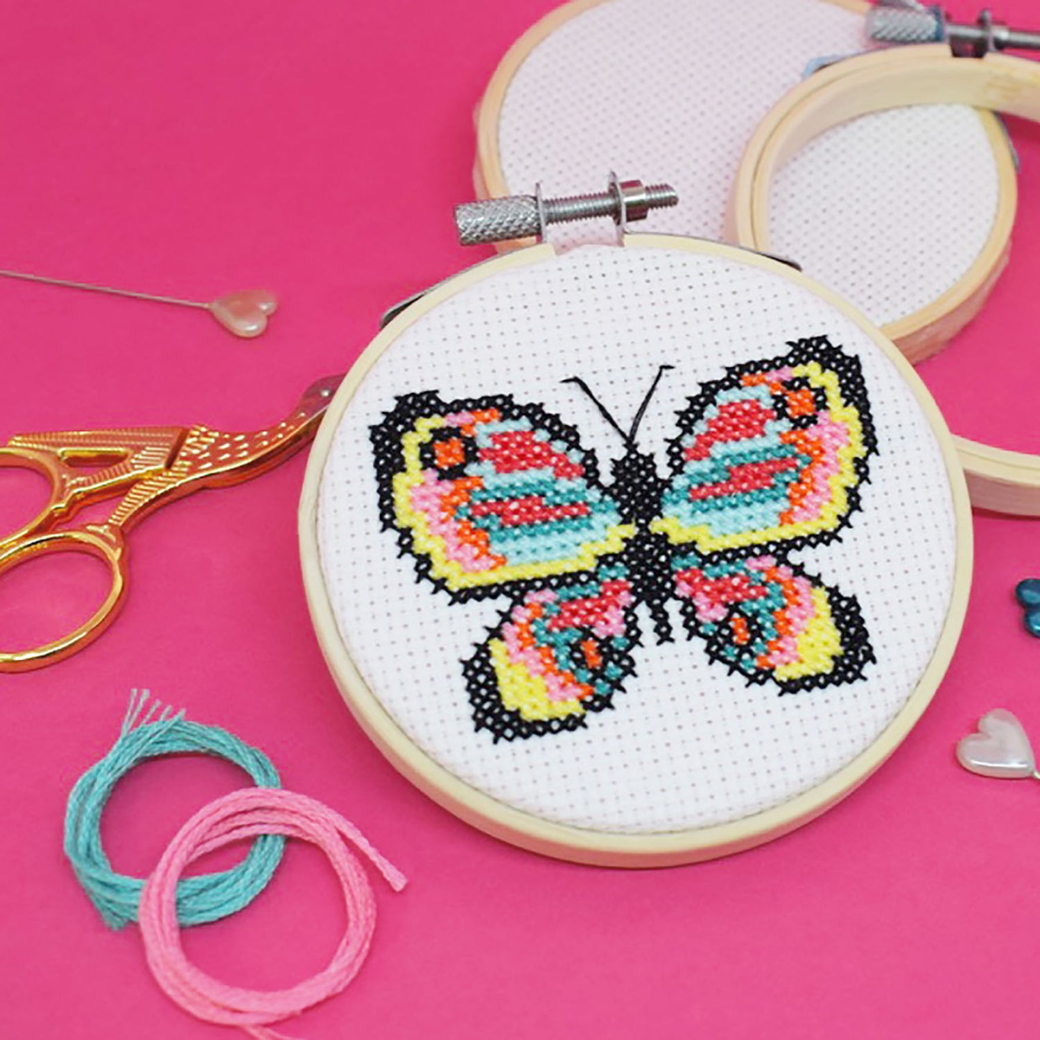 Sew up the most beautiful butterfly in the cheeriest of colours with this easy peasy cross stitch kit!