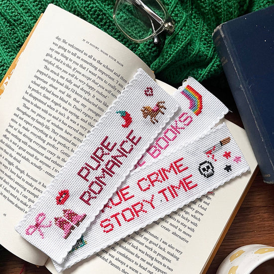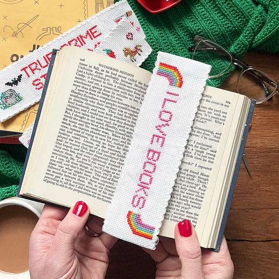 'The Book Club' is designed for book lovers and stitchers who enjoy small, satisfying projects. This version of our cross stitch box includes blank bookmark bases and a beautifully designed mini book of cross stitch motifs and stitched mottos - you can choose one of TEN book themed slogans and add your own mini motifs - created especially for bookmark projects.